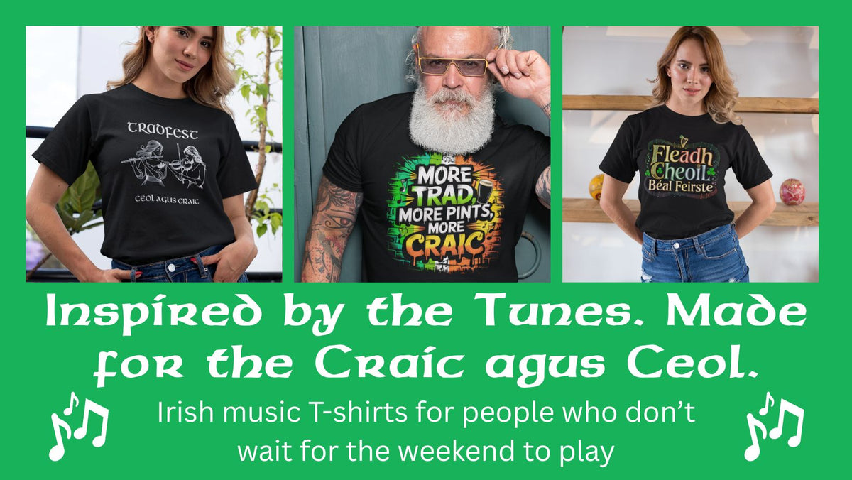 Love Irish music? You’ll love these. Our Irish Music T-Shirts are designed for session heads, Fleadh fans, and anyone who can’t resist a good tune and a bit of craic.