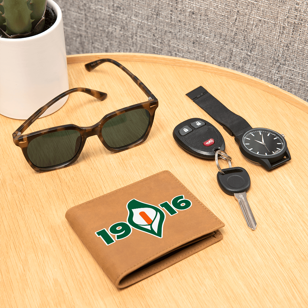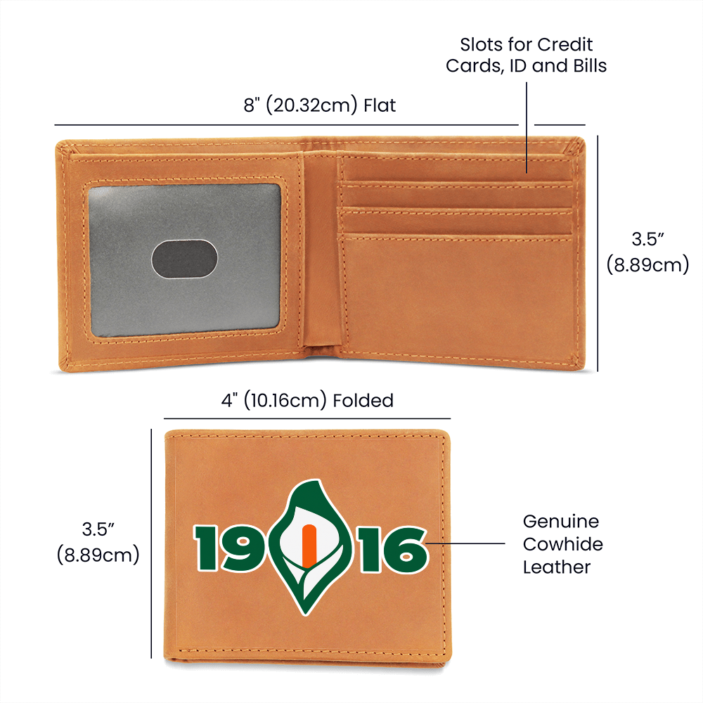 This handsome bifold wallet exterior is made of the highest quality genuine full grain cowhide. It's recognized for its amazing feel and appearance. Both durable and smooth, the wallet's warm brown color will take on a rich, vintage look, getting better with time and use. The unique design is vibrantly printed on the front and carefully shipped in a handsome black and white gift box - making this a gift to treasure for years to come!