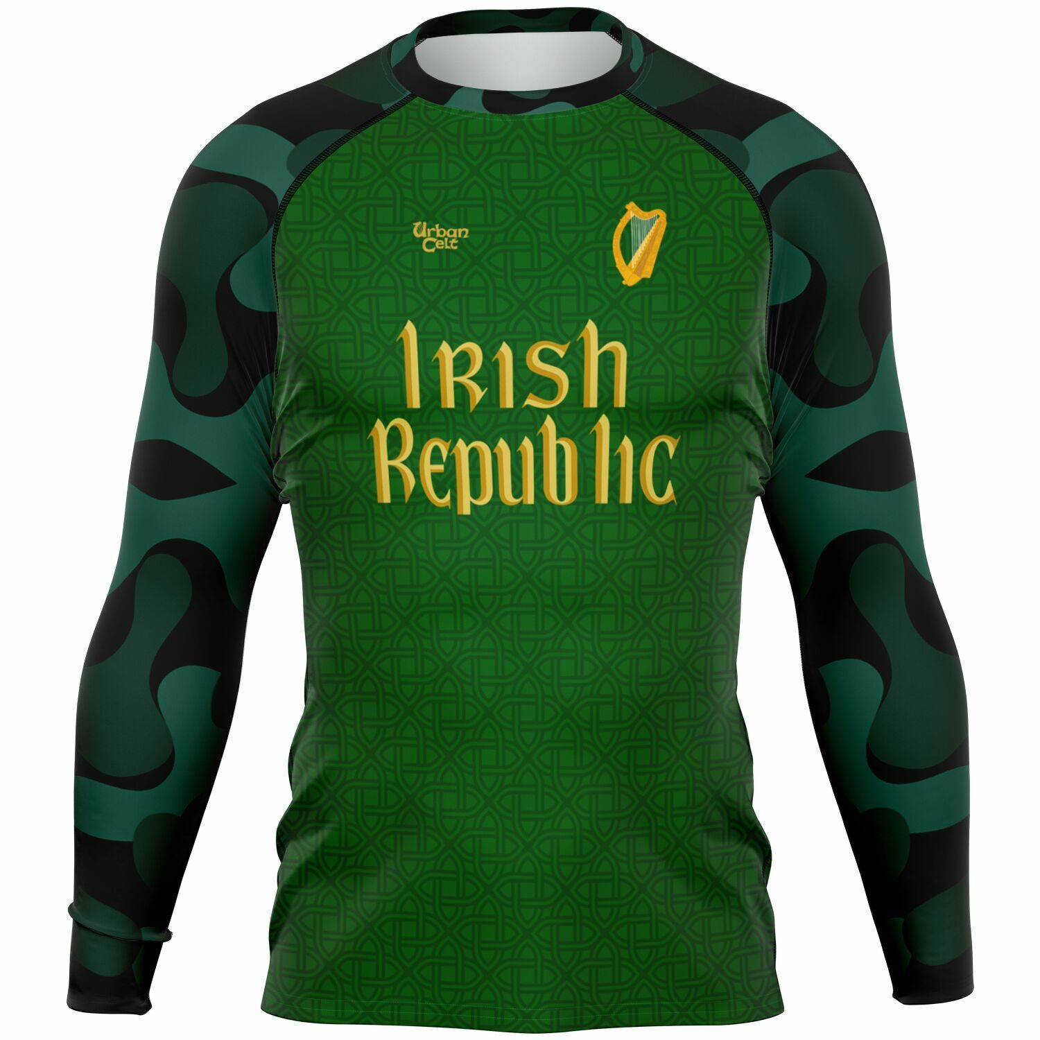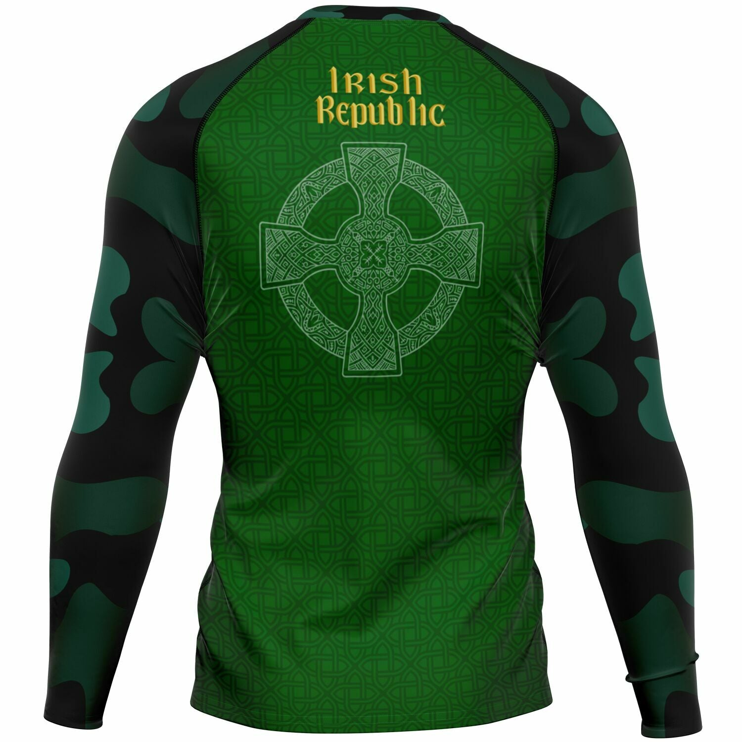 Defend your Irish pride with this Irish Republic UV rashguard. Featuring Celtic knot detailing and a bold green camo design, it blends heritage with performance. Ideal for sports, surfing, or GAA training — built for patriots who carry Éire in their heart.