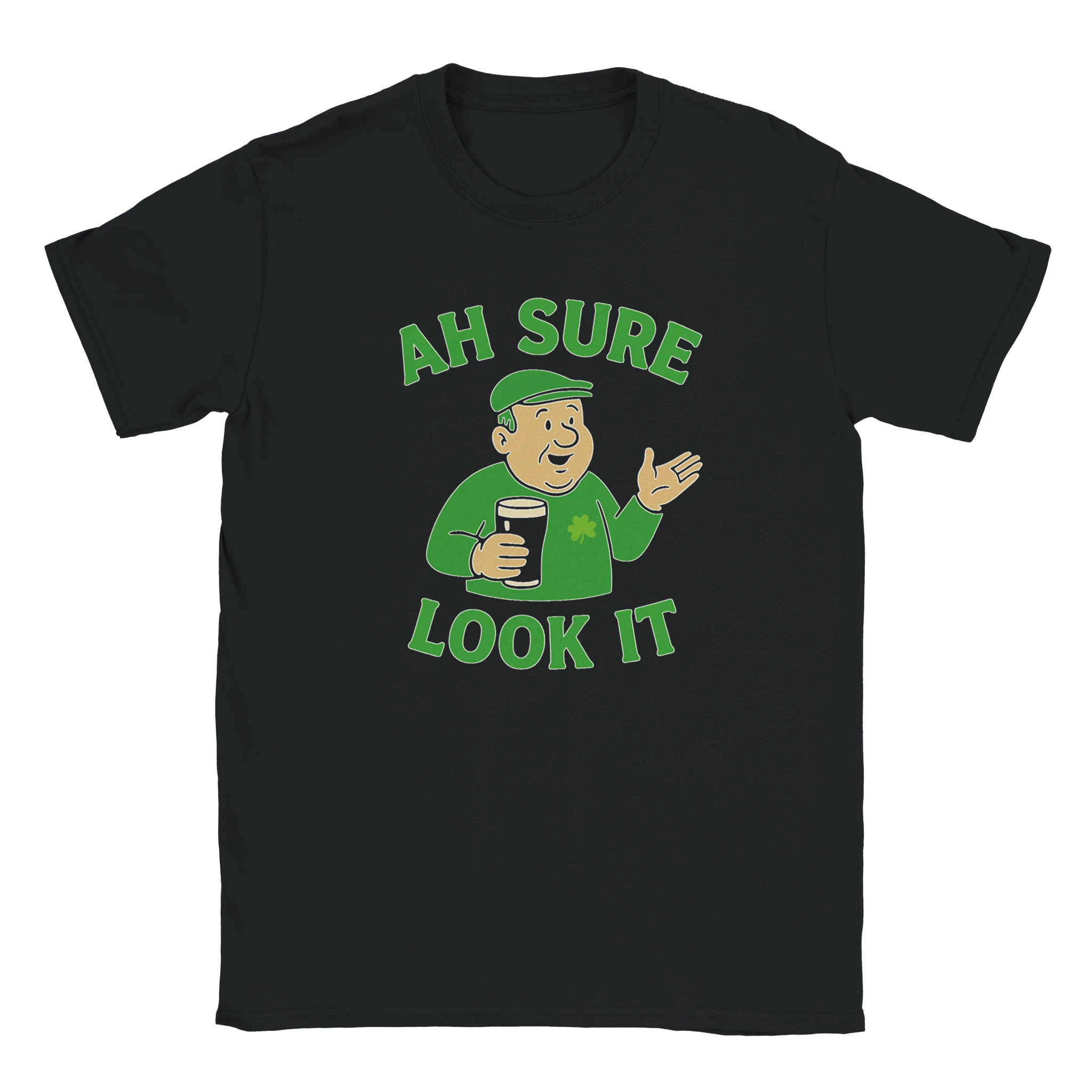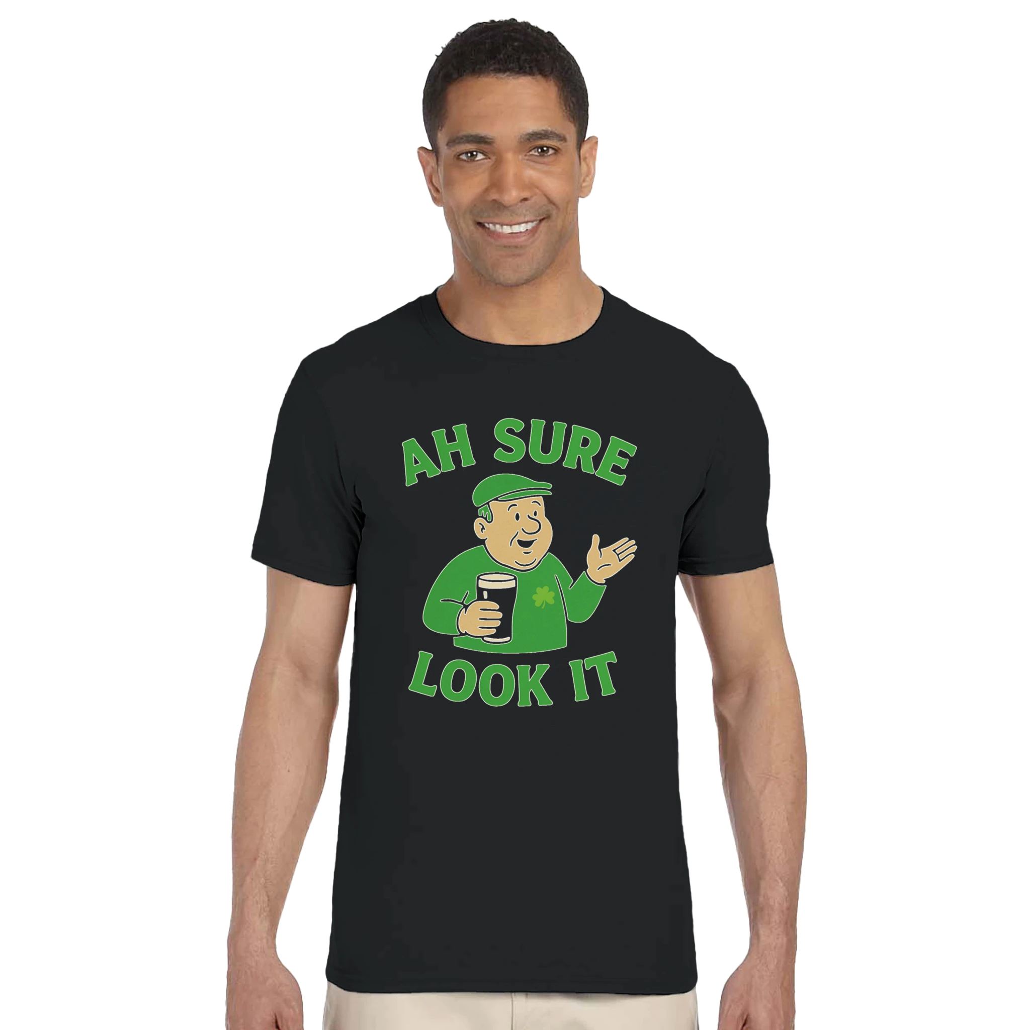 Show off your Irish humour with this “Ah Sure Look It” unisex cotton T-shirt! Featuring a cheerful Irishman holding a pint, this design captures the classic laid-back Irish attitude. Perfect for fans of Irish banter, pub craic, and witty Irish sayings. Great gift for Paddy’s Day or any Irish legend!