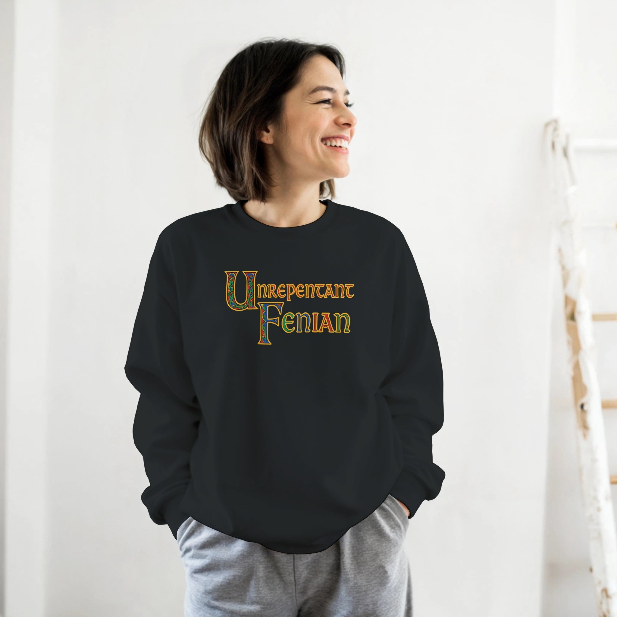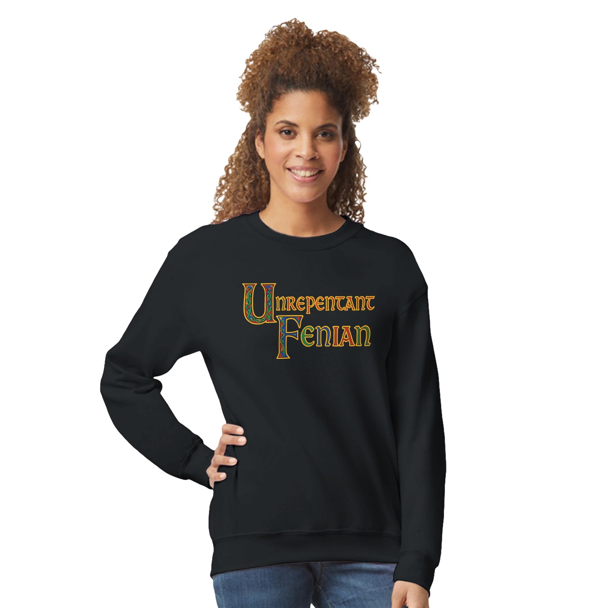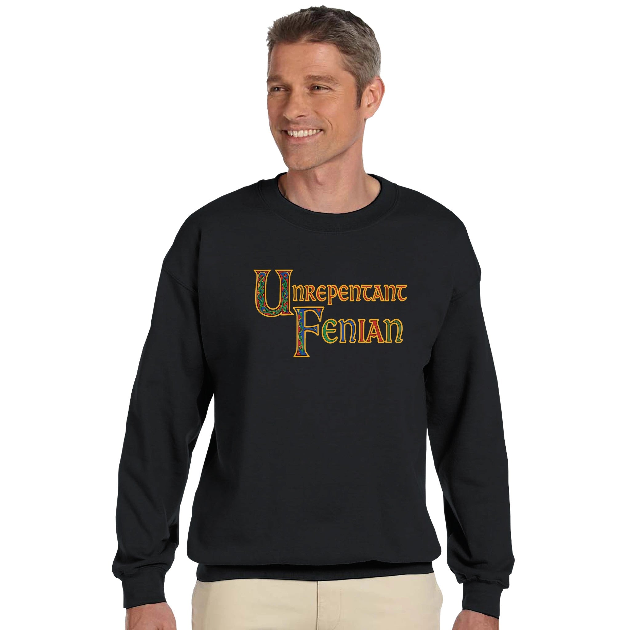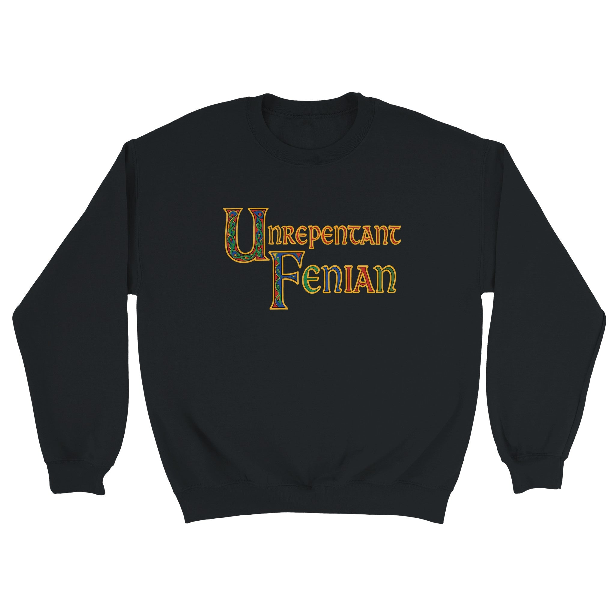 Show your Irish pride with this bold “Unrepentant Fenian” unisex sweatshirt featuring Book of Kells-style Celtic lettering. Vivid illuminated colors stand out beautifully on dark fabric — a perfect design for proud Irish patriots, history lovers, and heritage enthusiasts.