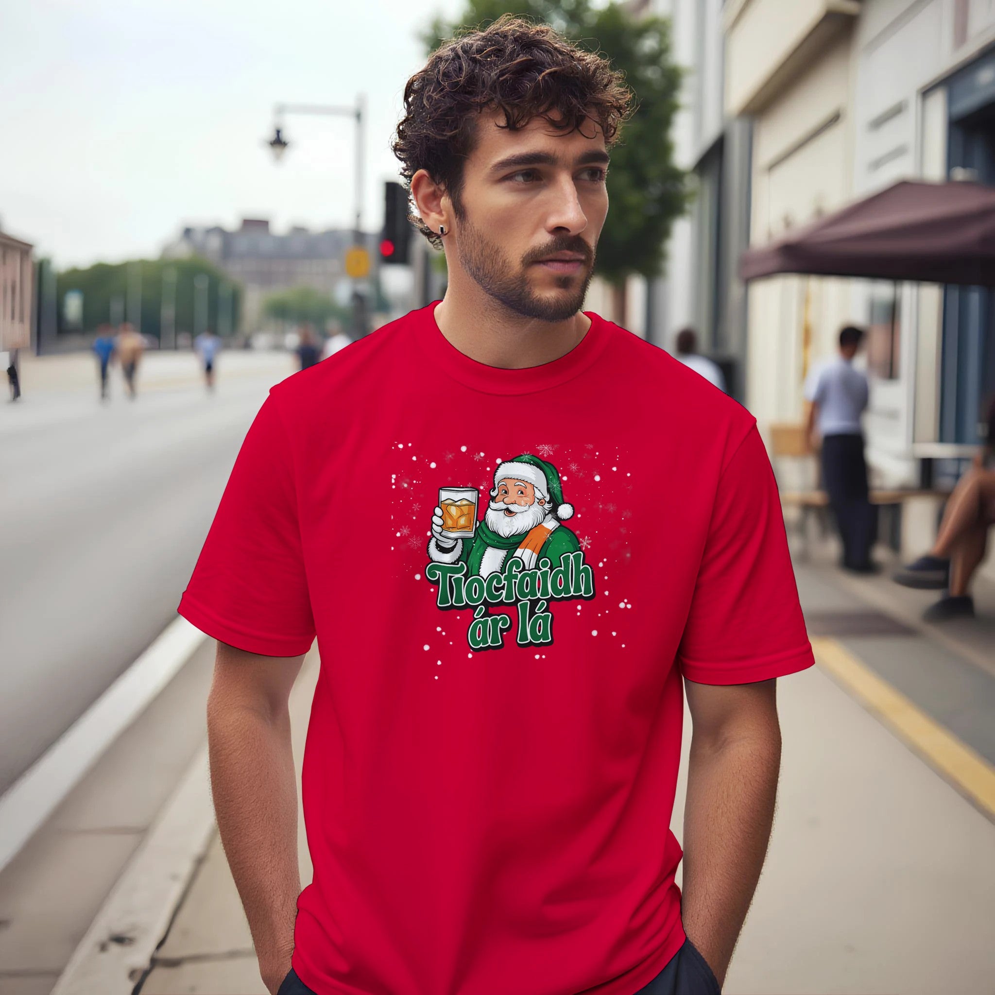 A festive twist on Irish pride! Santa dresses in green, lifts a whiskey, and wishes everyone a spirited Christmas with “Tiocfaidh ár lá.” A perfect tee for whiskey fans, rebels at heart, and anyone who loves Irish banter.