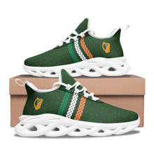 Styled with a dark green Celtic knot detail with Tricolour Celtic knot style stripes with the Irish Harp these are a unique pair of Irish and Celtic style mesh knit unisex sneakers exclusive to Urban Celt.