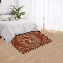 Custom designed area rug with a Norse Tree of Life design and a Celtic Knot style border print. The Tree of Life symbol is found throughout Celtic history, faith and culture. The Celtic Tree of Life meaning is said to represent balance and harmony, which is at the heart of the Celtic culture. They say the Tree of Life as a representation of the three stages of life: birth, death and reincarnation in another life.