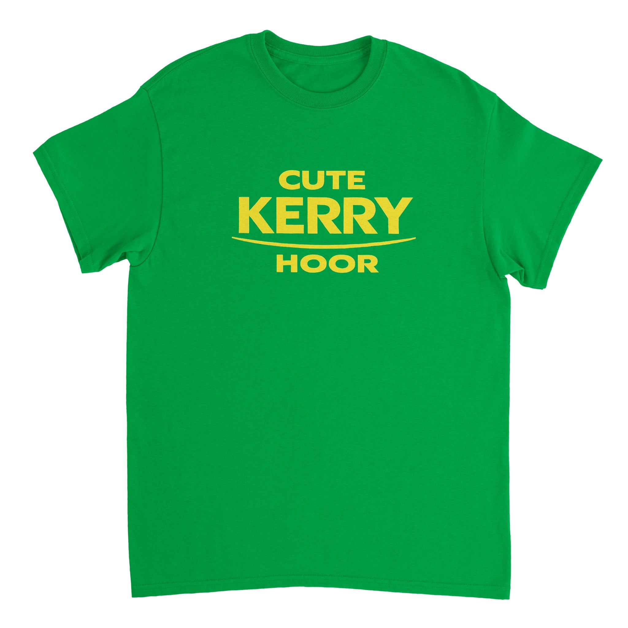 Cute Kerry Hoor parody design printed on a premium heavyweight cotton t-shirt. Inspired by Kerry’s iconic green and gold sponsor style, this bold Kingdom tee is perfect for loyal Kerry GAA fans with pride, passion and plenty of humour.