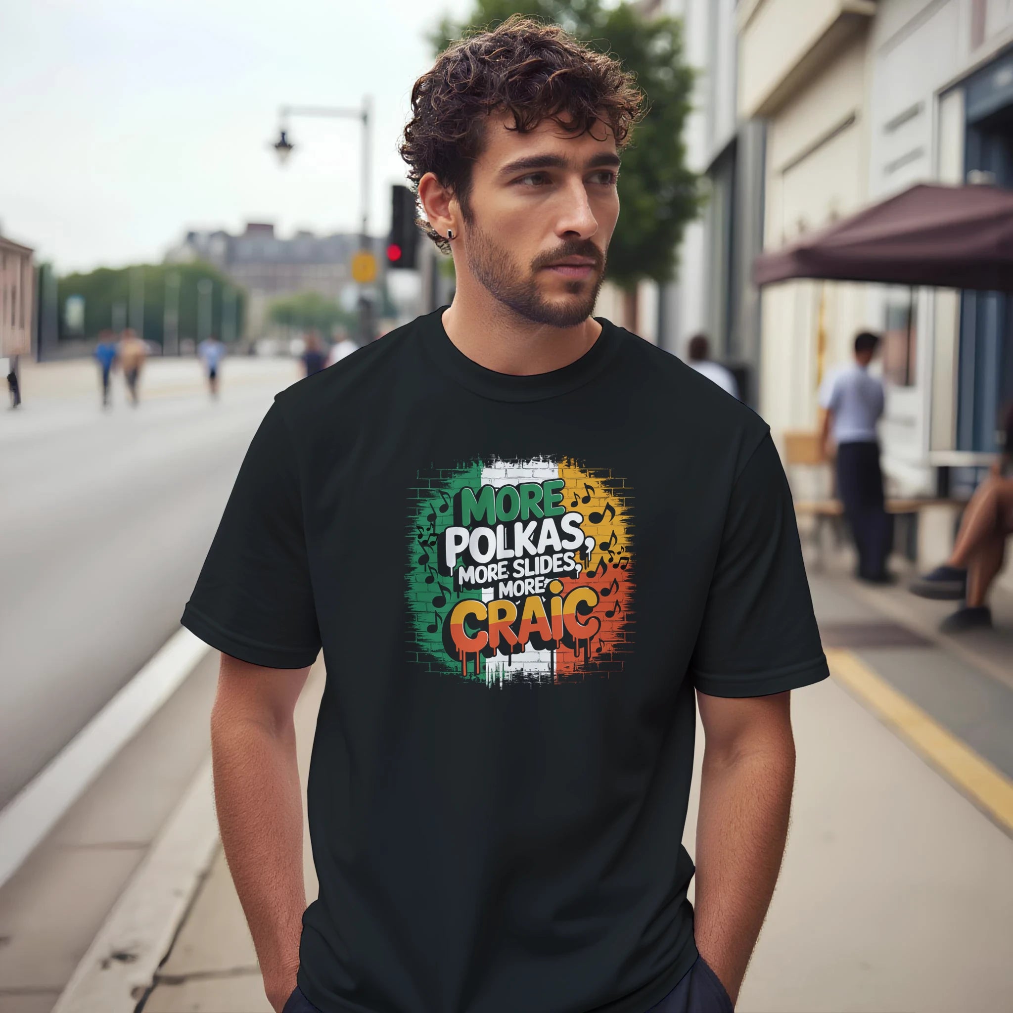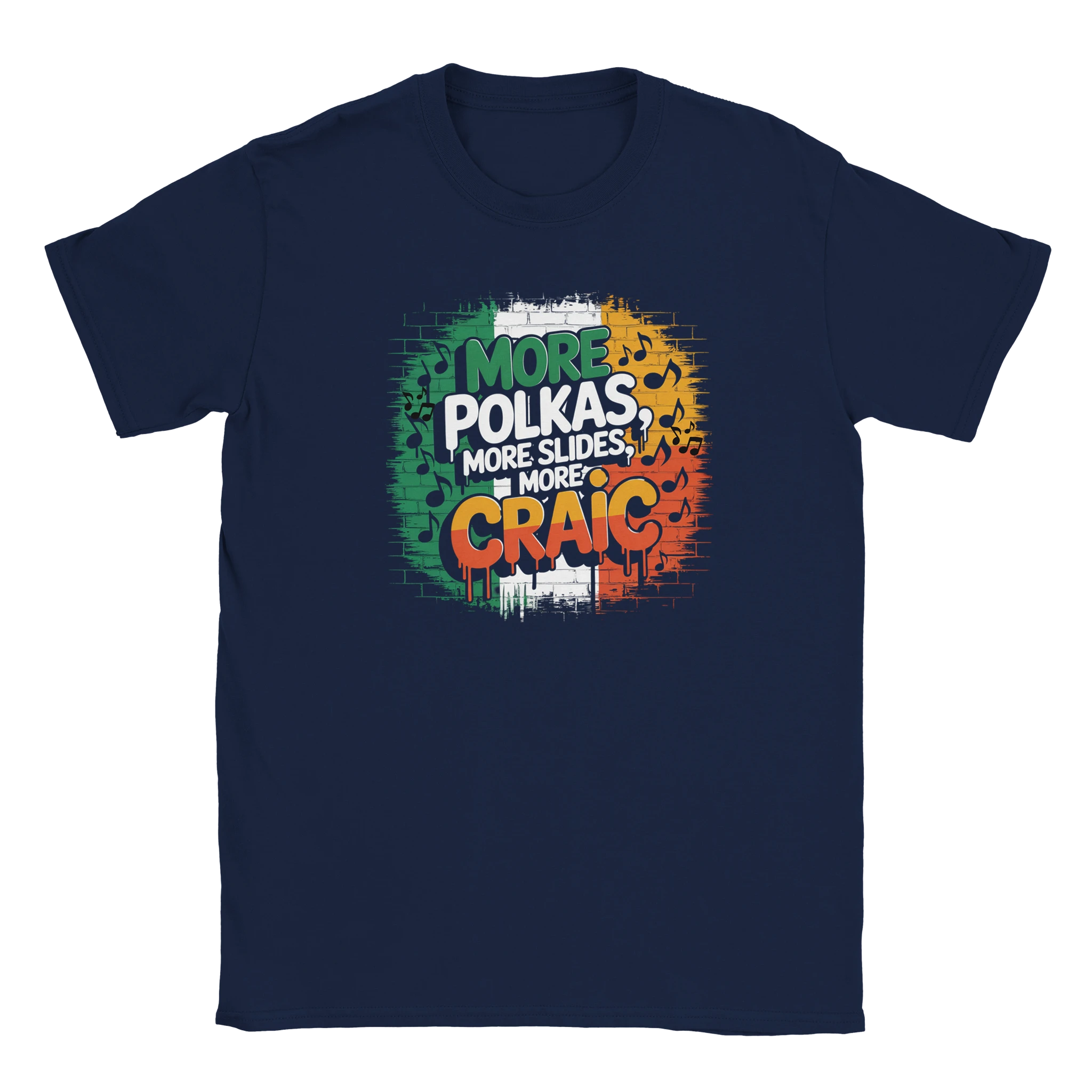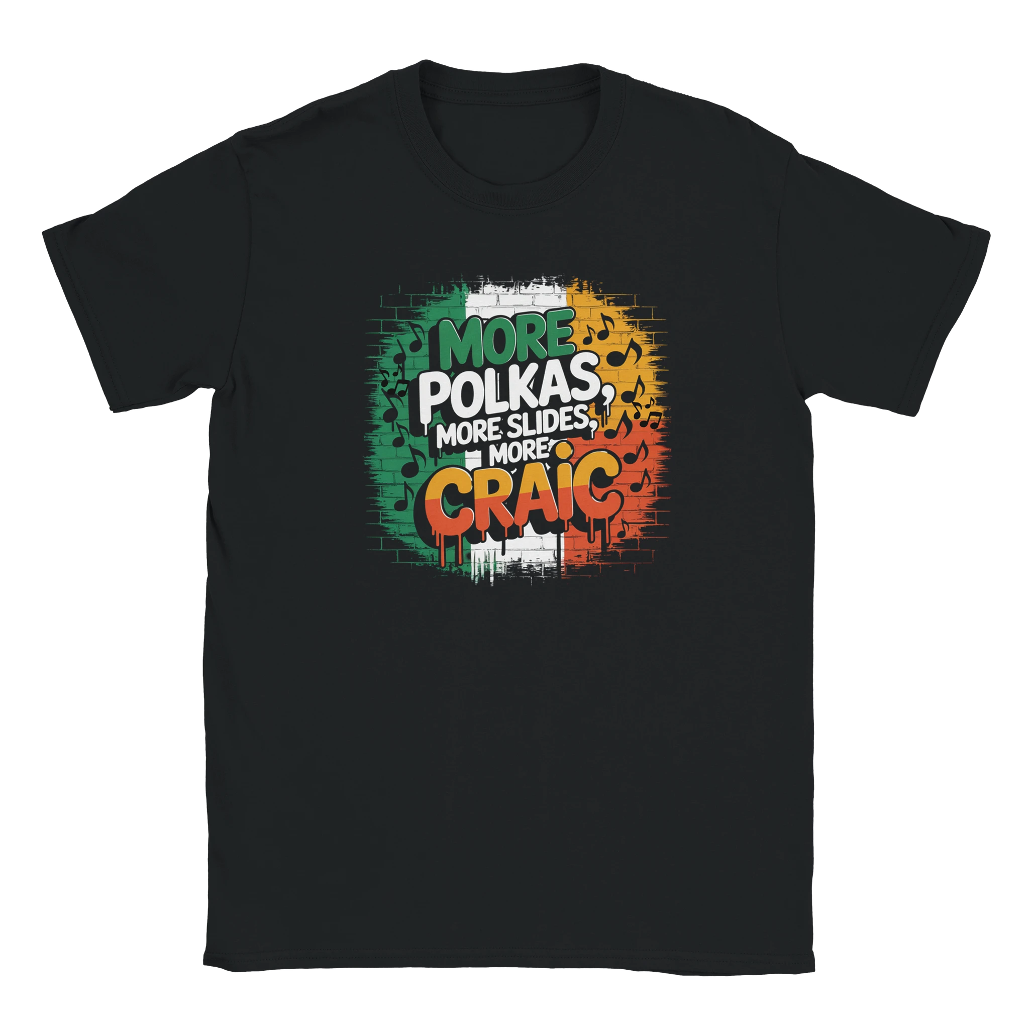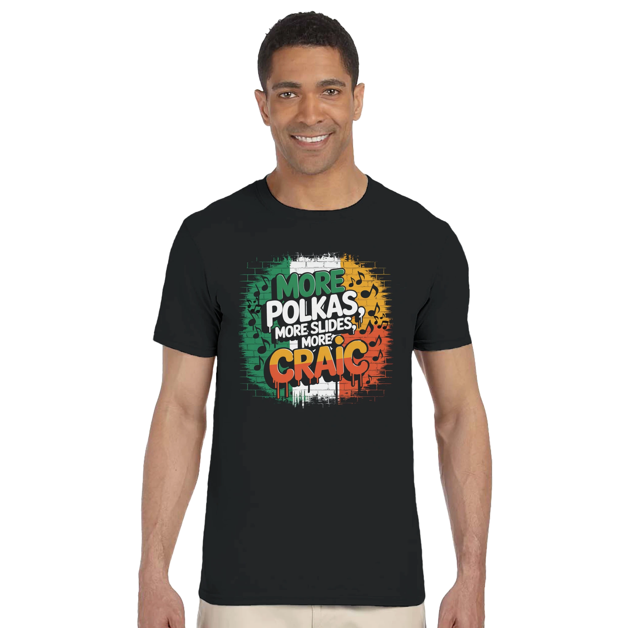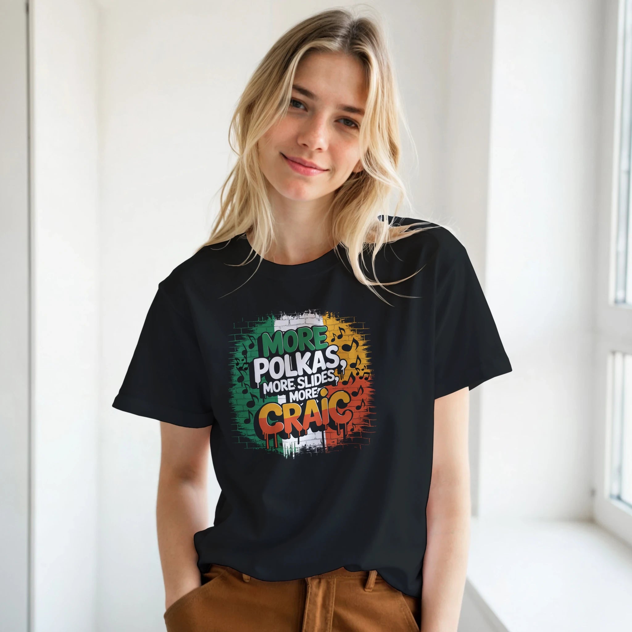 Celebrate the spirit of Irish music with this unisex cotton tee featuring “More Polkas, More Slides, More Craic.” A nod to the lively Sliabh Luachra tradition, it’s the perfect shirt for Irish trad musicians, session lovers and anyone who lives for a good tune and great craic.