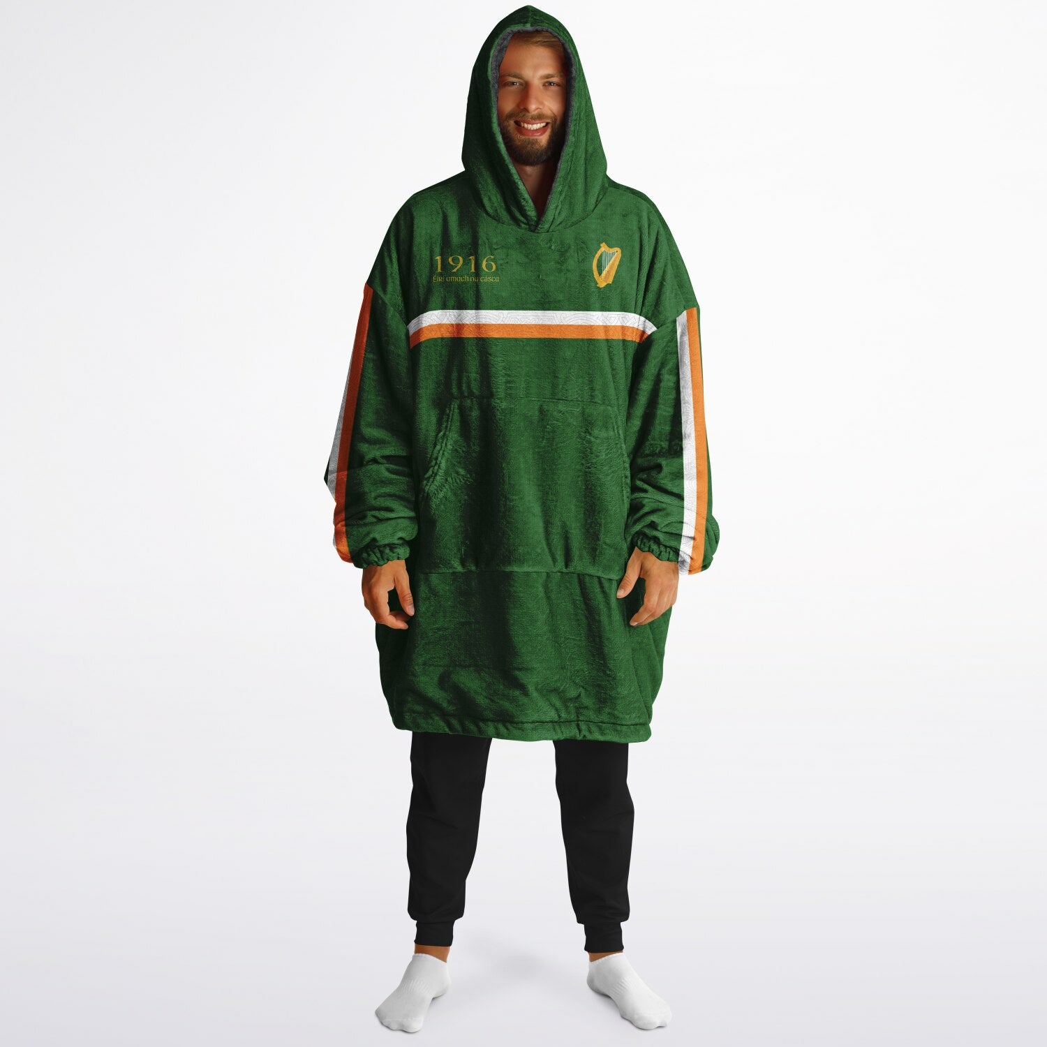 Turn it inside out and reveal a green Celtic-inspired design featuring white and orange knotwork stripes, the Irish harp, and the historic 1916 Éirí Amach na Cásca text — a powerful nod to Irish independence. Sized to perfection, the hoodie is based on 5XL dimensions, catering to those standing anywhere from 150cm (5 feet) to 190cm (6 feet 2 inches).