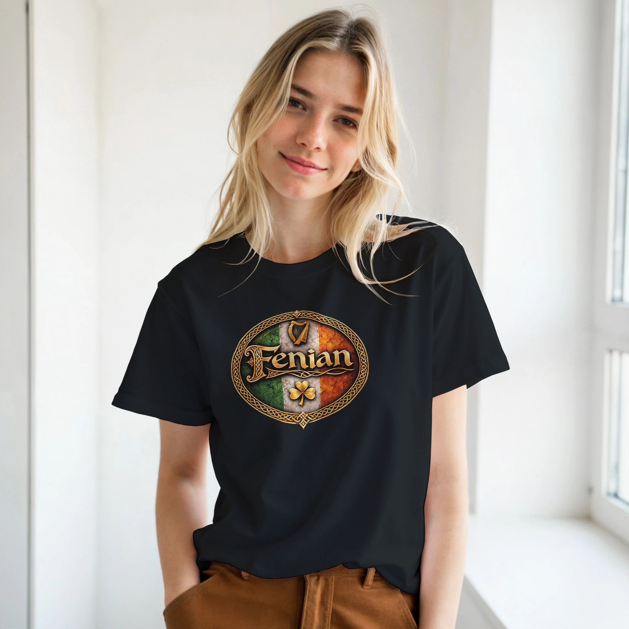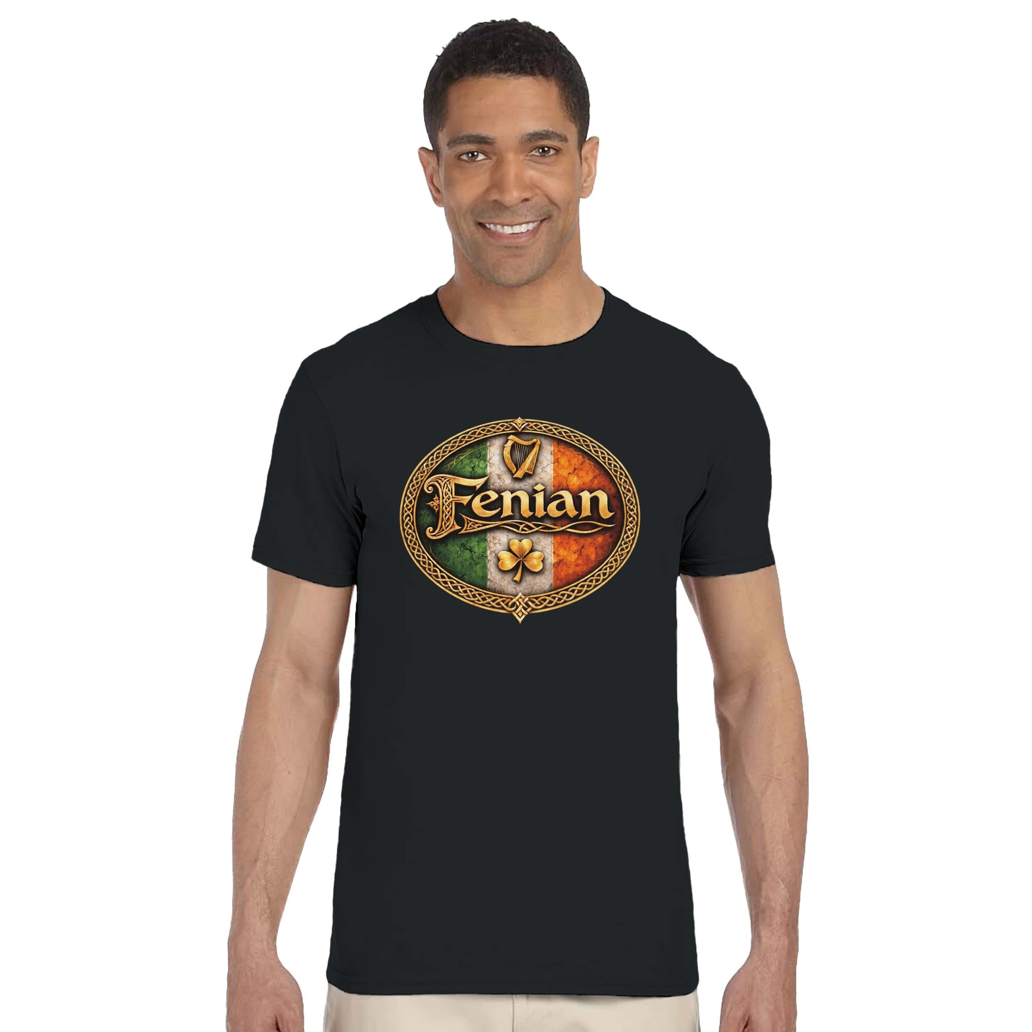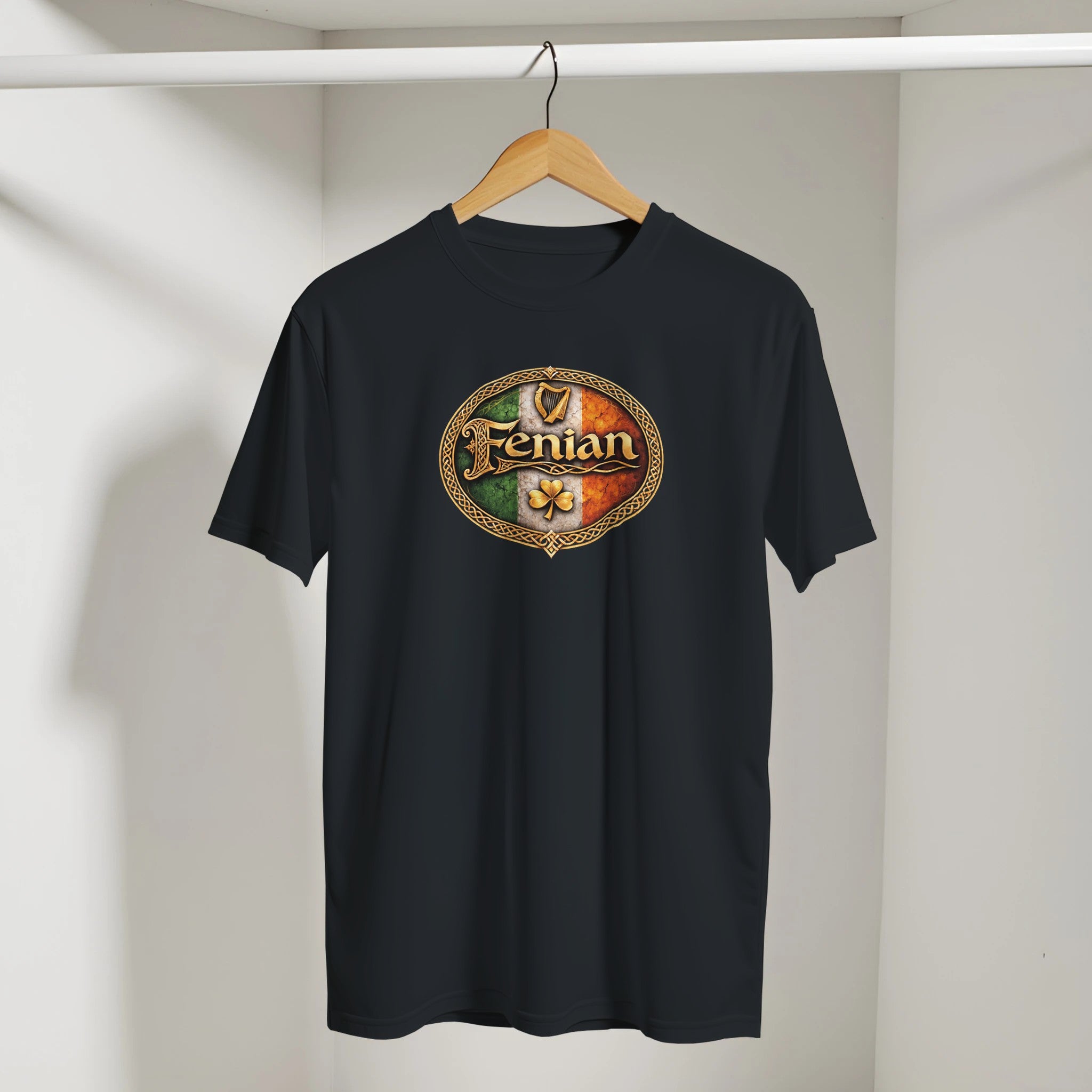 Fenian Pride t-shirt featuring bold Celtic script within a heritage knot circle. Once a slur, now a symbol of pride. The word “Fenian” carries the courage of those who fought for Irish freedom and never apologised for it. This design celebrates that legacy — proud, fearless and rooted in Irish history, heritage and identity.
