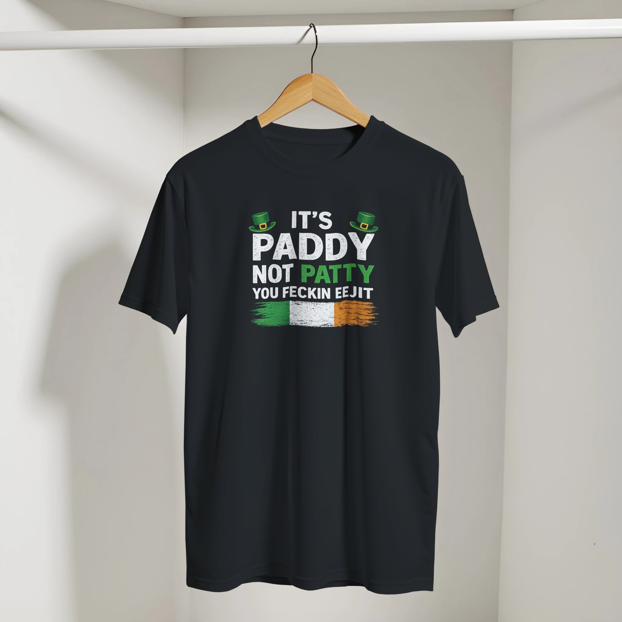 “It’s Paddy, not Patty, you feckin eejit!” Say it loud this Paddy’s Day with this bold Irish humour t-shirt. Featuring a distressed tricolour design and sharp wit, it’s perfect for St. Patrick’s celebrations, parades and pub banter.