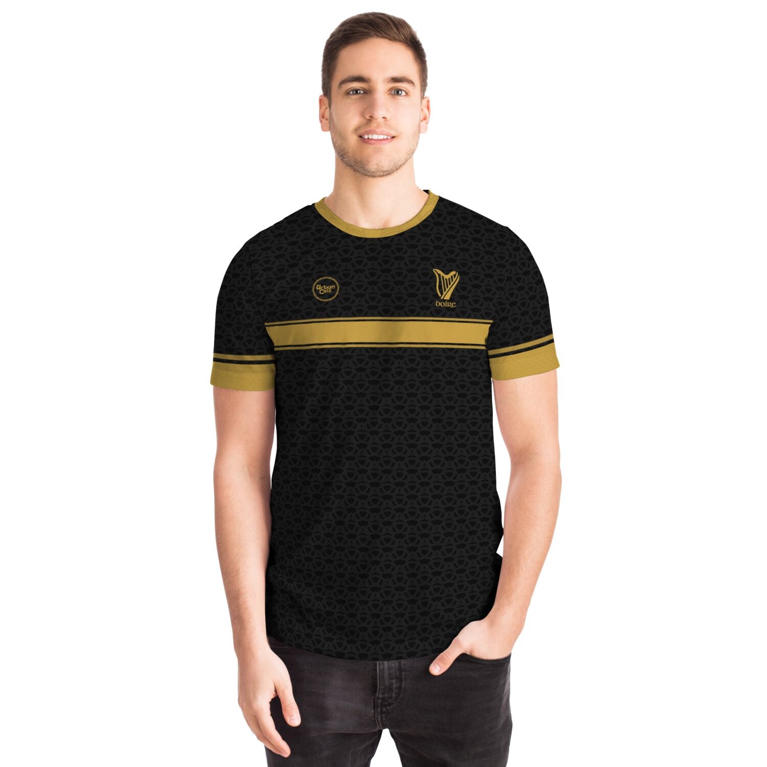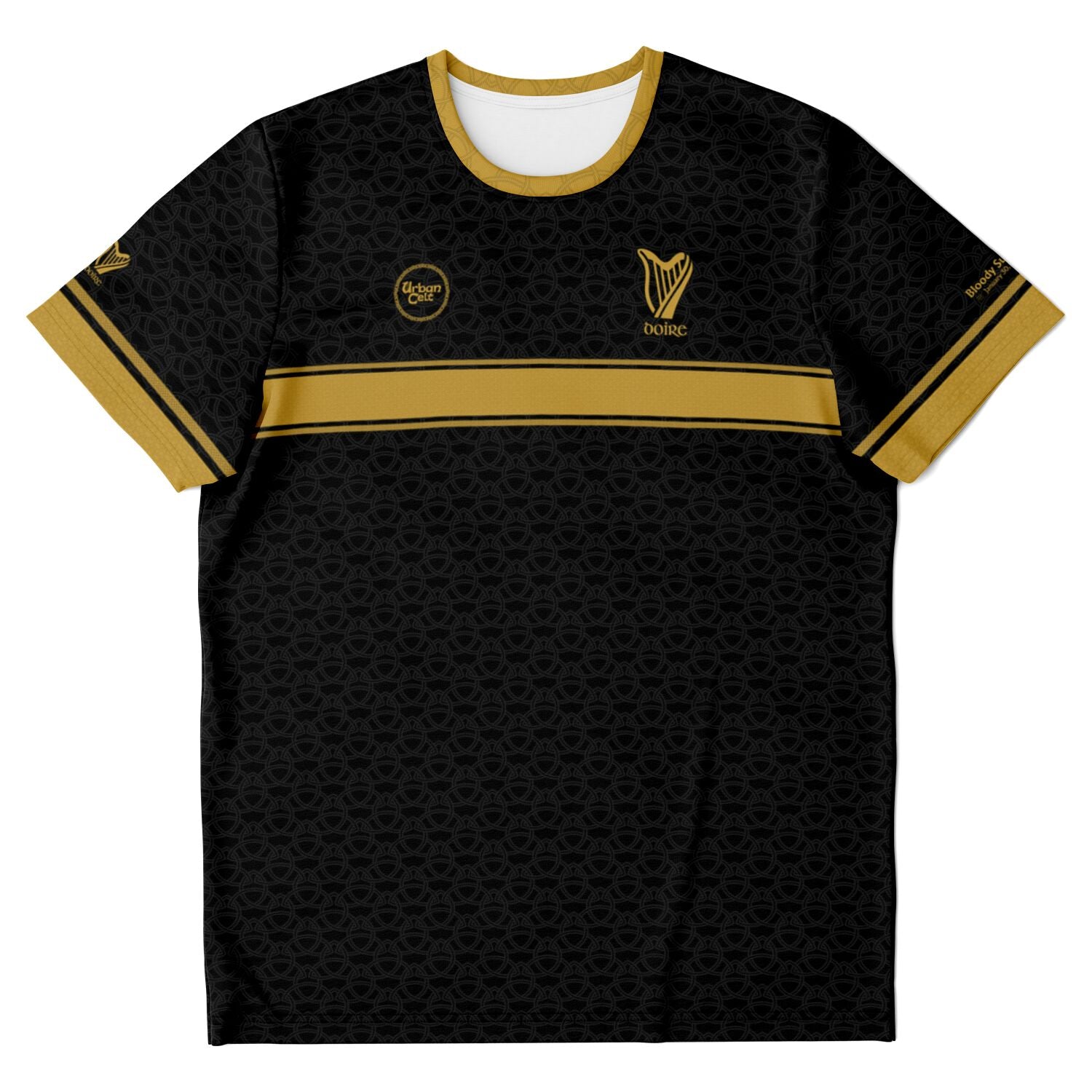 Commemorate the 14 lives lost on January 30, 1972, with this Black and Gold Bloody Sunday Jersey. Featuring intricate black Celtic knot detailing, gold Celtic knot stripes, and the Irish harp with Doire on the chest, this design blends heritage and remembrance. On the back, Domhnach na Fola appears above the number 72, with the names of those killed that day—honouring their memory with pride and respect. Featuring a crew neck, short sleeves, and a premium 100% polyester fabric with a cotton handfeel, and high definition printing that won't fade after washing.