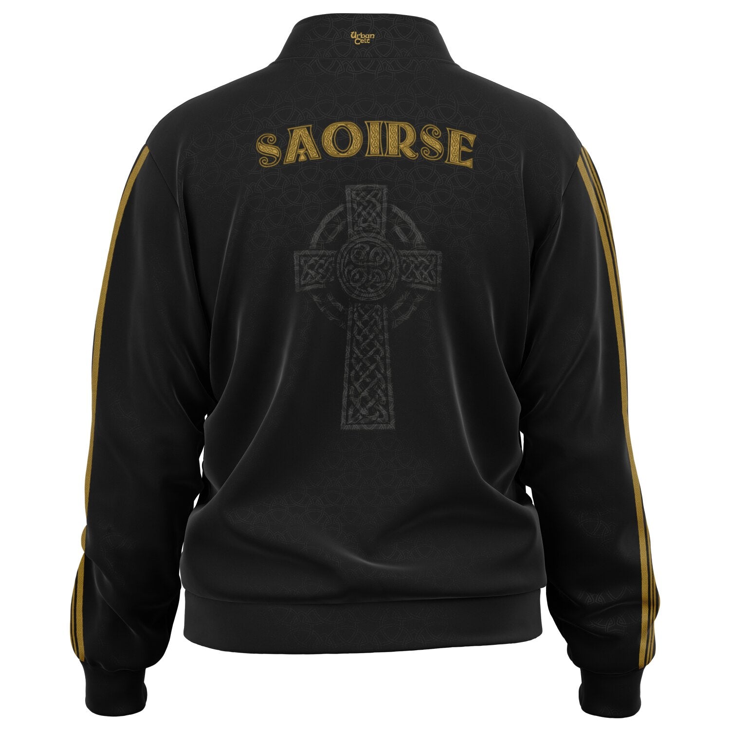 The Irish Republic Black-Gold Edition Track Top blends sport and heritage. With black Celtic knot detailing, gold accents, and the Irish harp, it echoes the 1916 Irish Republic flag. A bold look for those proud to wear their history with modern Irish style.